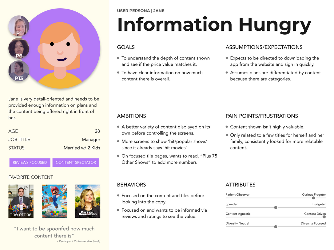 After synthesizing the user interviews, I came up with 4 user personas to guide us in our strategy.